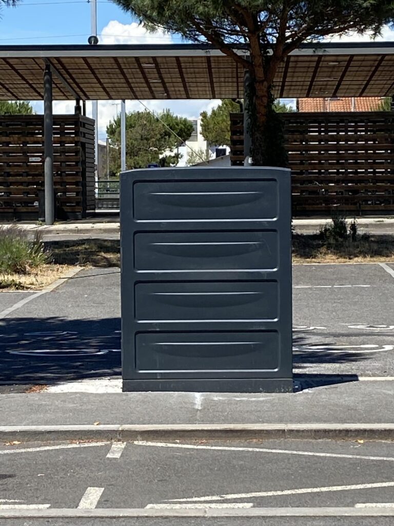 Notre première réalisation, où tout a débuté, a été de fabriquer des armoires câblées pour le groupe Vinci, destinées à des bornes de recharge à La Baule. Ces bornes, installées sur des parkings privés et publics, fournissent une puissance allant de 100 à 180 kVA. Le client souhaitait éviter l’utilisation de deux armoires distinctes pour le comptage et la distribution, nous avons donc regroupé toutes les fonctions dans une seule armoire. Un défi supplémentaire était la couleur spécifique demandée par le client, différente du standard 7032. Grâce à l’expérience de notre société, nous avons trouvé un revêtement en polyuréthane avec une couleur validée par le client.